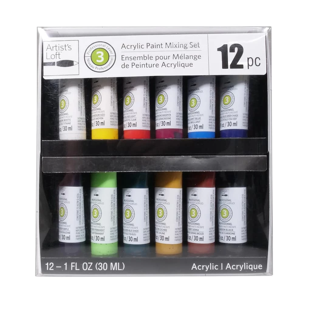 Stash this acrylic paint set in your art kit, and use it to add a pop of color to your drawings. The included paints will surely enhance your artwork. You can also use it to embellish unfinished, wooden plaques, storage crates and other DIY craft projects. Set colors include:Β Titanium White, Yellow Medium Azo, Naphthol Red Light, Quinacridone Magenta, Brilliant Blue, Phthalo Blue (Green Shade), Dioxazine Purple, Light Green Permanent, Phthalo Green (Blue Shade), Yellow Ochre, Burnt Sienna, and Carbon Black.