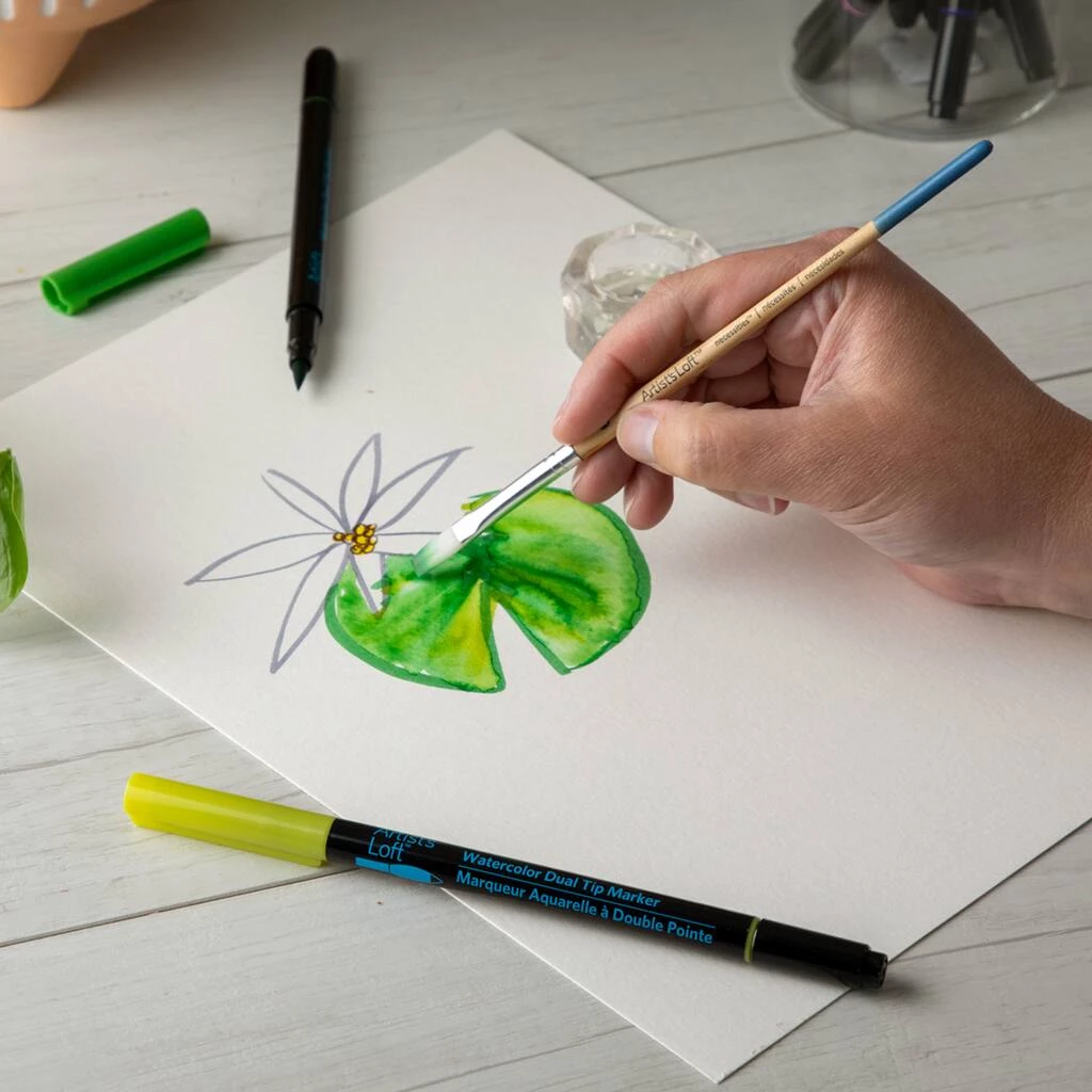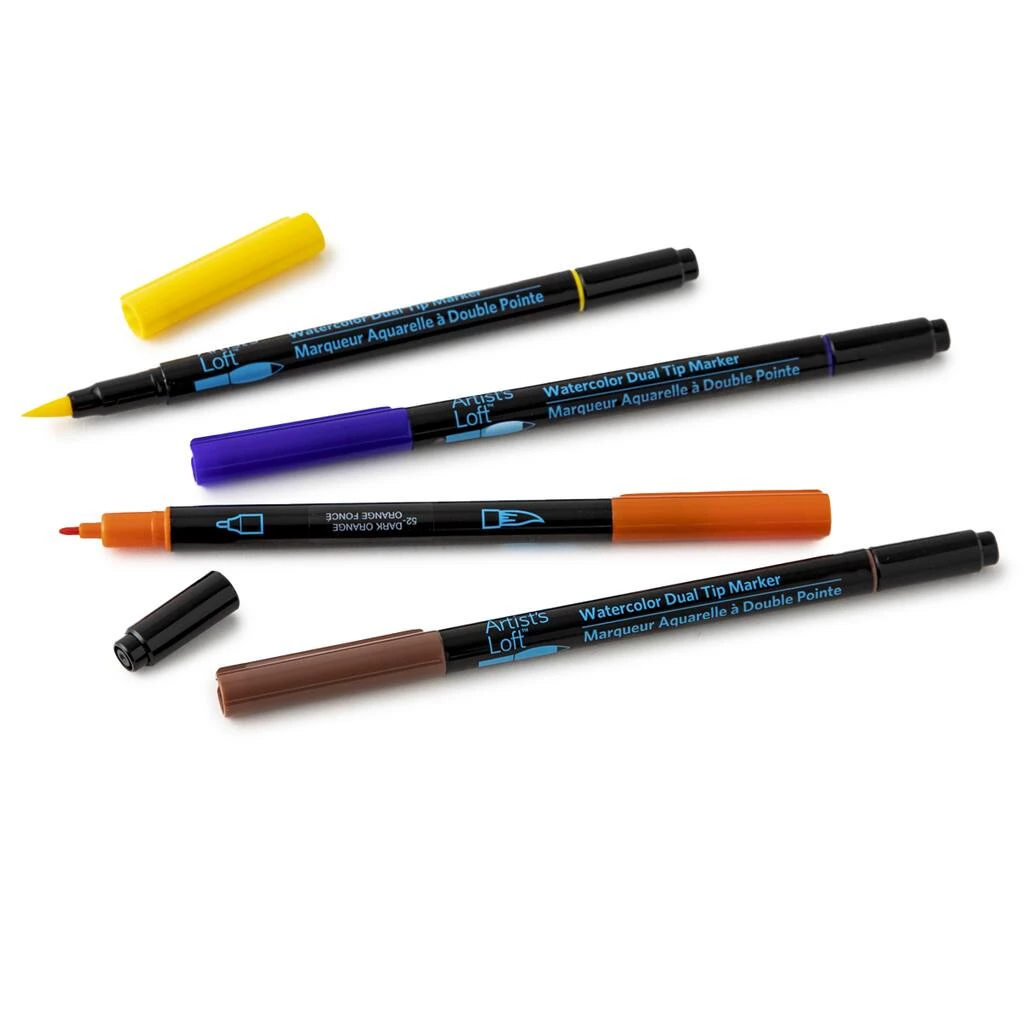 Create beautiful works of art with this set of watercolor markers by Artist’s Loft. These markers contain water-based ink that is suitable for use with water or watercolor paints. With a fine tip on one end and a brush tip on the other, you can create fine lines or thick strokes with equal ease. These dual-tip markers are the ultimate tool for sketching, drawing and calligraphy.