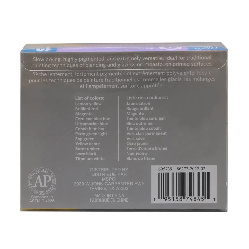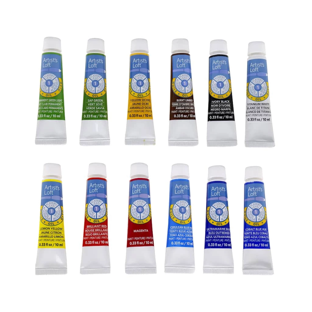 This set of oil paints from Artist’s Loft features basic colors that are slow drying, highly pigmented and extremely versatile. They are great for learning traditional techniques, great for blending, glazingΒ and are perfect for beginners. The included colors are lemon yellow, brilliant red, magenta, cerulean blue hue, ultramarine blue, ivory black, titanium white, cobalt blue hue, perm green light, sap green, yellow ochre and burnt umber.