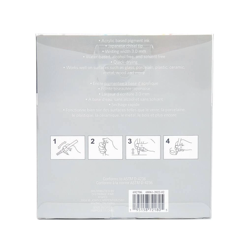 These brightly-hued paint markers from Artist’s Loft feature a Japanese chisel tip and acrylic-based pigment ink. Water-based, alcohol and solvent free and quick drying, these markers work well on craft surfaces such as glass, porcelain, plastic, ceramic, metal, wood and more.