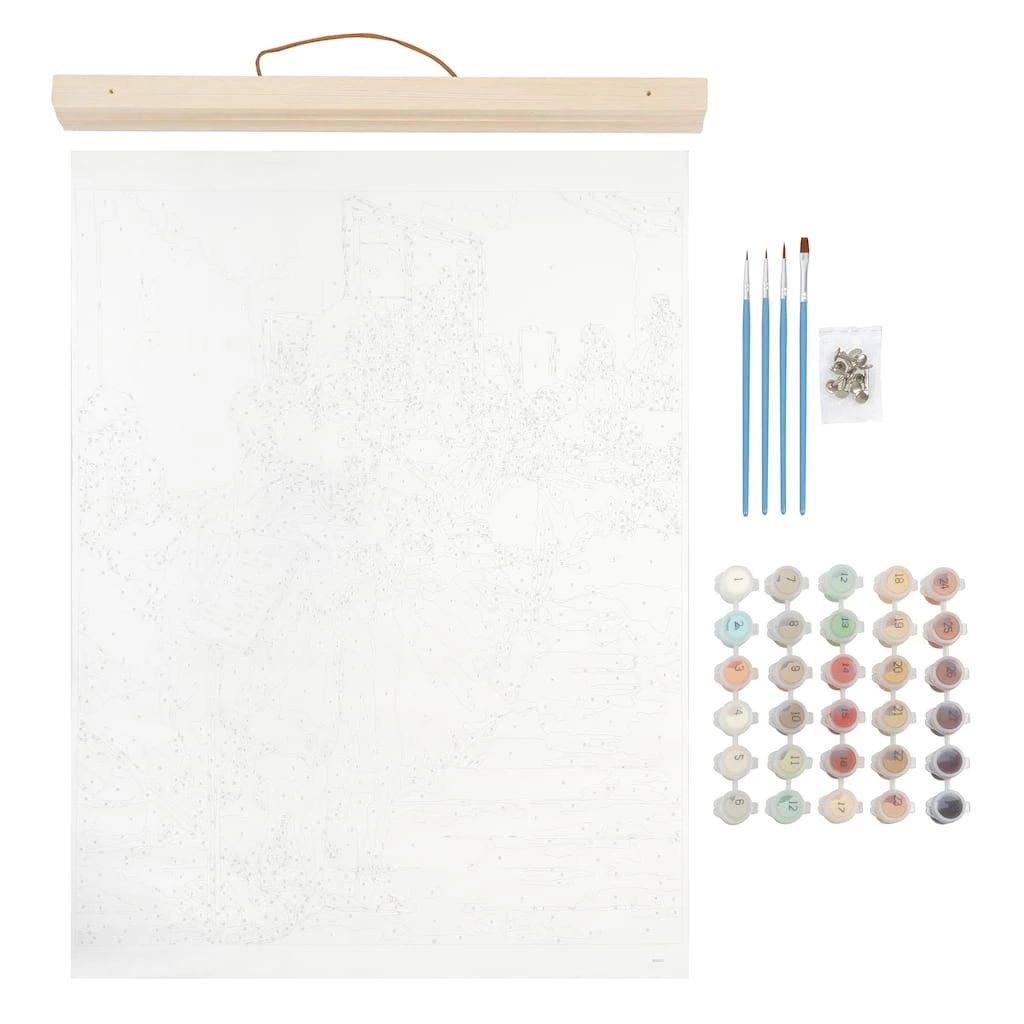 - Pre-printed canvas sheet with guidelines and numbers (16″ x 21.5″/40.6cm x 54.6cm)