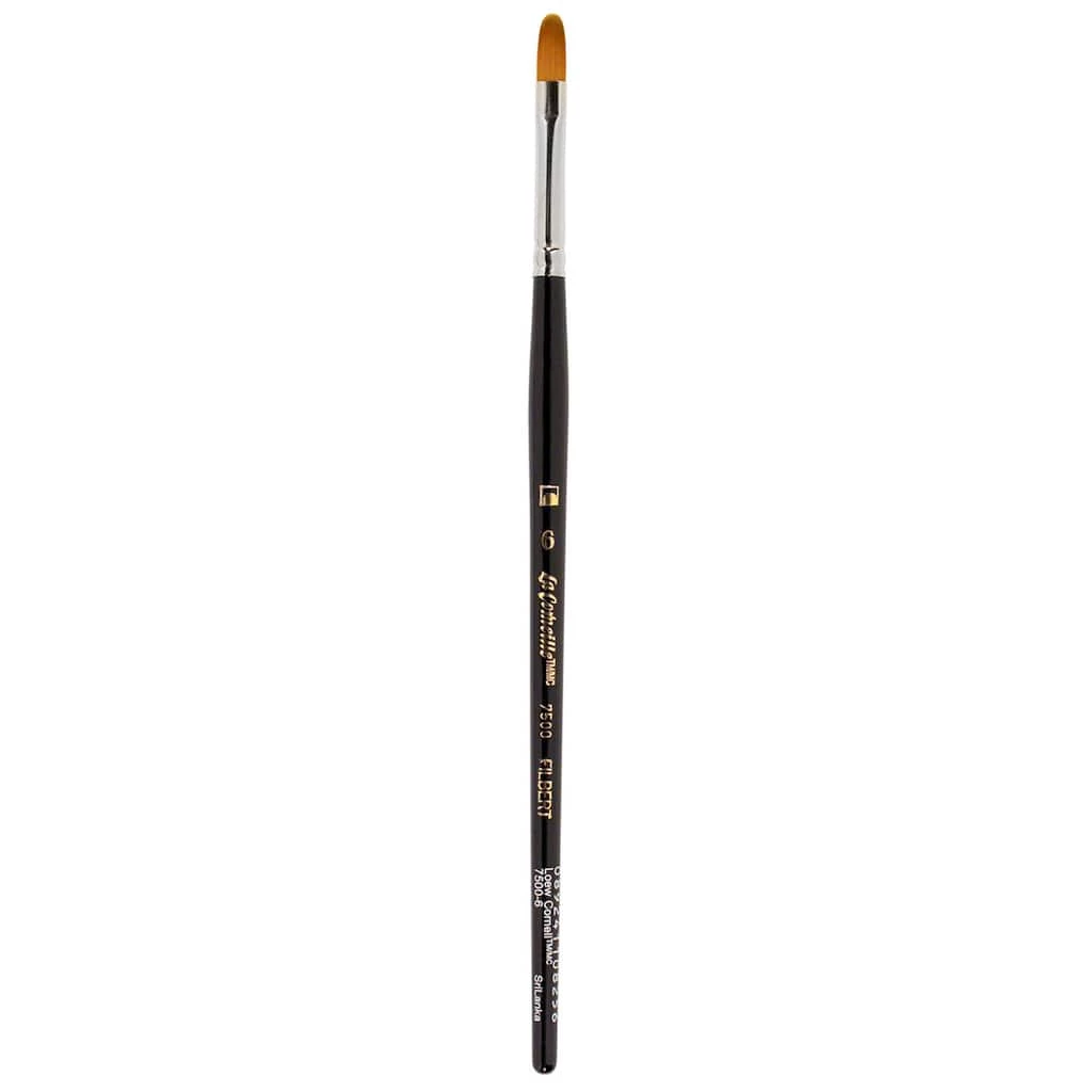 Golden Taklon brushes are widely-used in acrylic, oil, and watercolor decorative painting. This short handle filbert brush is great for creating soft edges and blending, filling and floating color. Designed for intermediate and advanced craft painters and fine artists, it has triple filament and fully dyed Taklon bristles, a seamless nickel-plated ferrule, and a lacquered wood handle. This brush is absorbent, durable, and versatile.