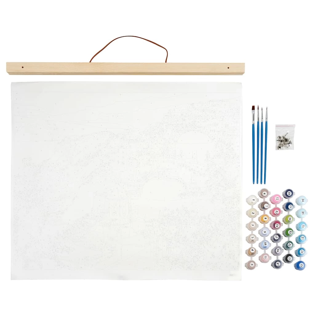 This Greece scenery paint-by-number kit is a fun, simple, and relaxing activity for teens, adults, and seniors! There is no previous experience with art or painting needed. Simply match the numbered paint pots with the numbered sections. Secure the completed painting on the included wooden display hanger, and mount it on your living room wall for all to see.Β