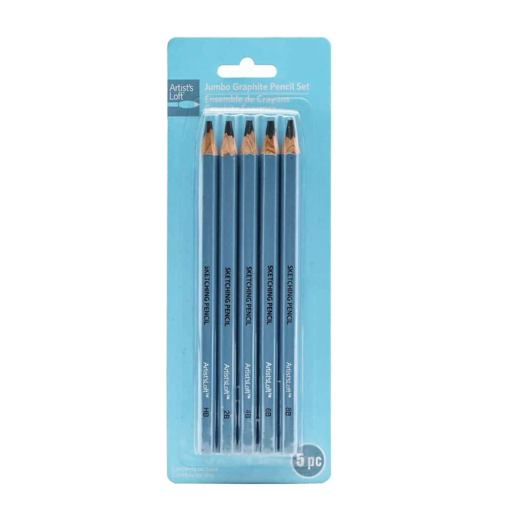 Perfect for student level artists, these jumbo graphite sketching pencils from Artist’s Loft will be a fantastic addition to your drawing supplies. In an array of hardness grades for shading, sketching and more, these pencils are pre-sharpened with a hexagonal shape. Set hardness grades include HB, 2B, 4B, 6B and 8B.
