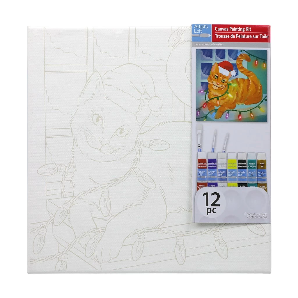A fantastic way to add a bit of holiday magic to your craft time, this canvas painting kit from Artist’s Loft Necessities will provide a fun and relaxing outlet for your creativity. Complete with brushes, paints, a printed canvas and a paint palette, this kit has everything needed to paint a festive Christmas scene featuring a playful cat all tangled up in lights. Kit colors include Lamp Black, Titanium White, Lemon Yellow, Crimson Red, Viridian, Ultramarine Blue and Gold.