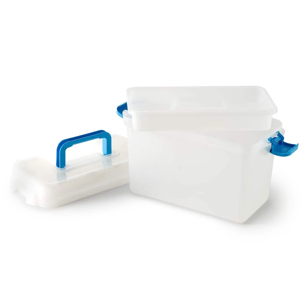 Organize and carry your art and craft supplies in this art storage case. Sporting a sturdy construction and unique design, this storage case is a must-have for every craft enthusiast. Use the comfortable handle to tote your essentials with ease.